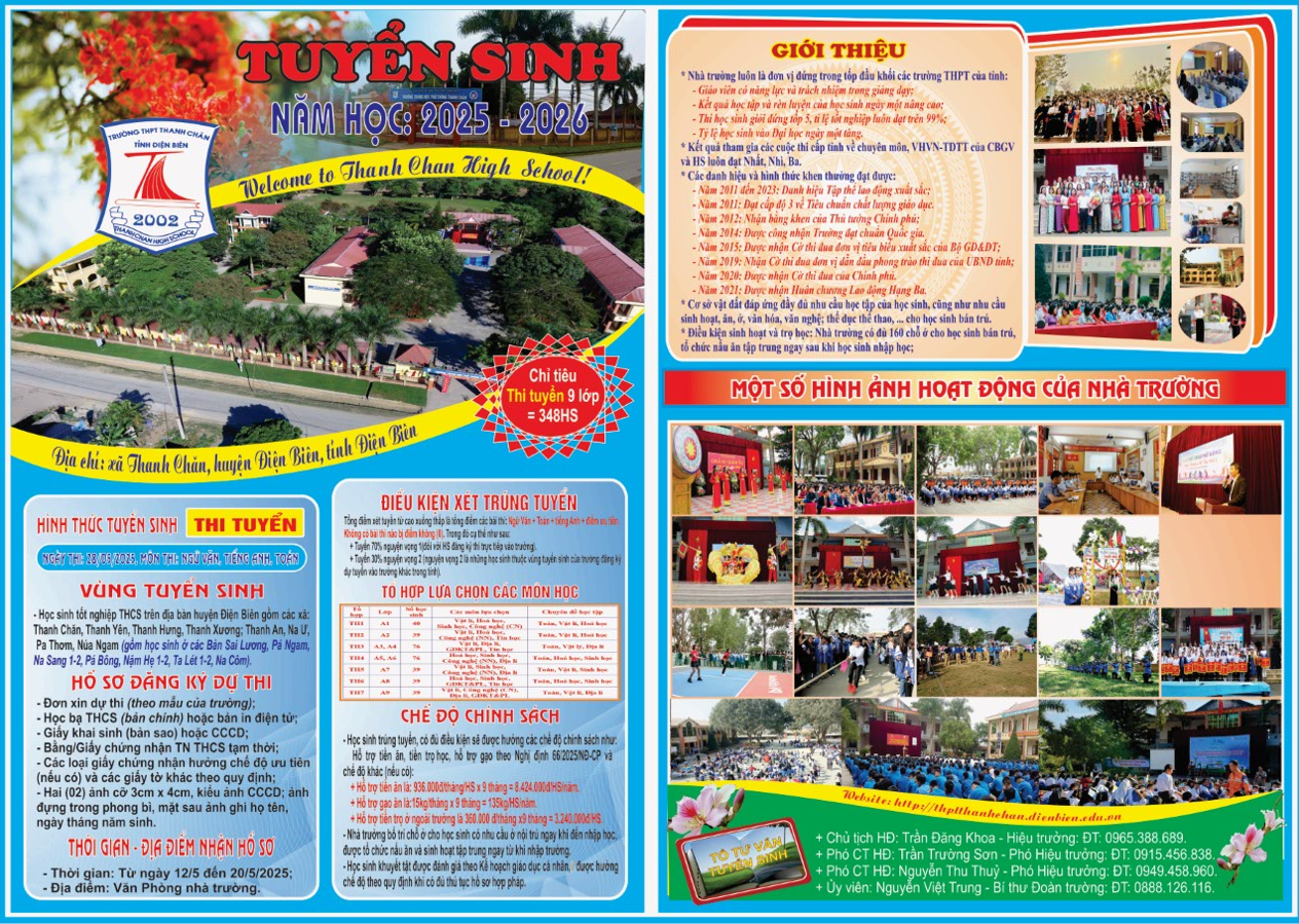 TRƯỜNG THPT THANH CHĂN TUYỂN SINH NĂM HỌC 2025-2026